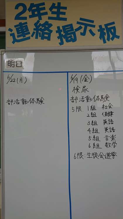 職員室前の学年掲示板には、日々、連絡事項が書かれてい