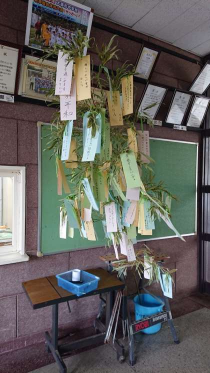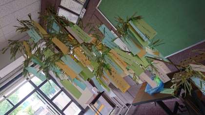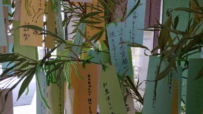 正門付近の七夕の笹、願いの短冊が多くてびっくり!