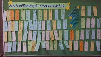 今日から短冊に書いたみんなの願い事が掲示されています。