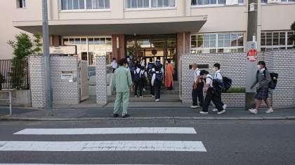 正門は1年生が活用していますが、8時25分を待たずに学校