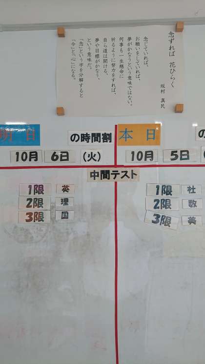 職員室の前に各学年の掲示板があります。