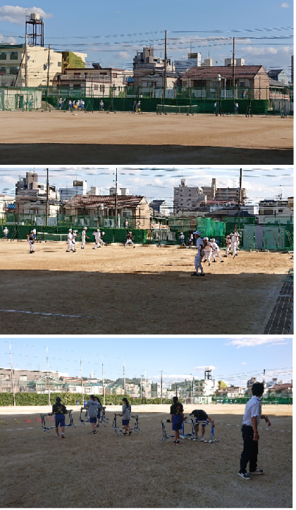 グラウンドでは、陸上競技部、野球部、テニス部が活動して