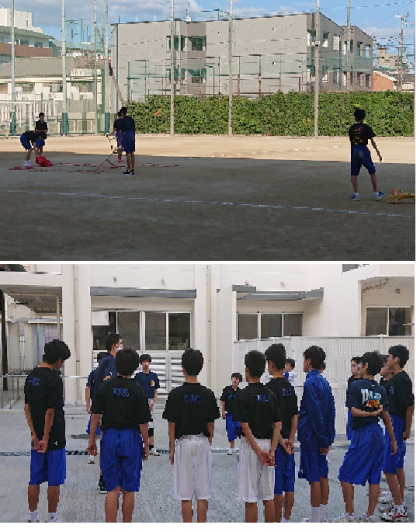 います。男子バスケットボール部は顧問を中心にミーティング