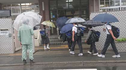 明日の土曜授業の台風の影響が懸念されますので、本日プリントを