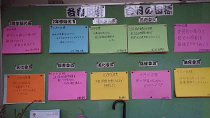 10月の各委員会からの目標が掲示されています。みんなが決めた
