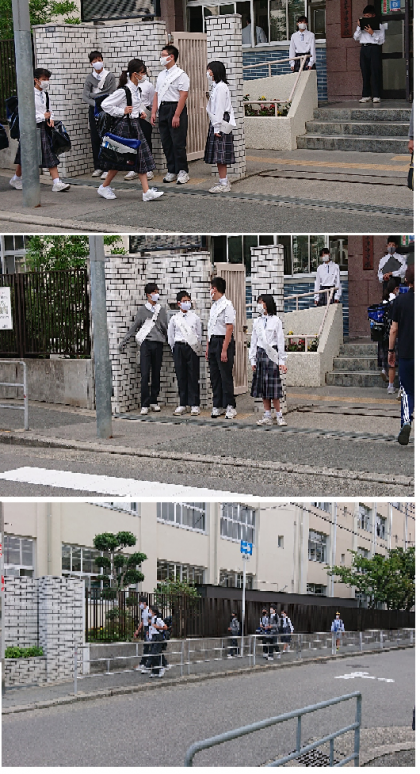 正門でのあいさつ運動を兼ねて大きな声で活動していまし