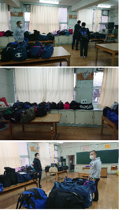 2日後の修学旅行の事前の荷物点検と荷物輸送を行いました。