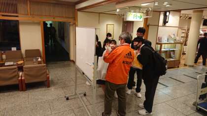 1日目の宿泊 世羅別館に順々に到着してきました。健康チェック、検温などして部屋に入り破損調査。
