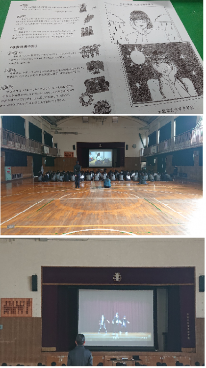 体育館では舞台発表を映像にして鑑賞しました。