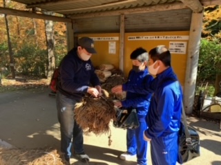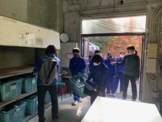 現地(貝塚)に到着し、飯盒炊飯の準備にとりかかります。