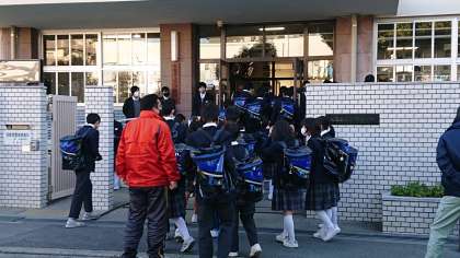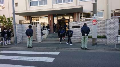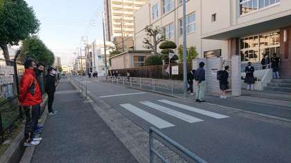 正門1か所の登校となり、狭い正門付近が、より狭く