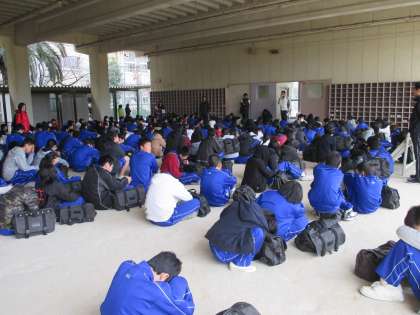 「靴返して、荷物持って初めの入り口前集合!」