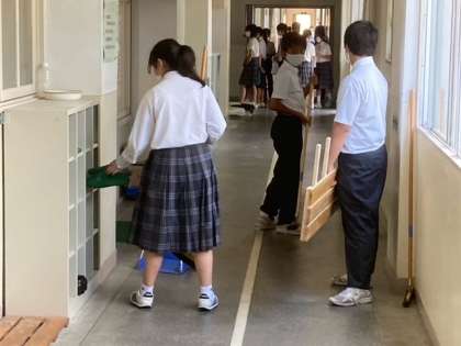 本日の4限は全学年で一斉にで大清掃を行いました。