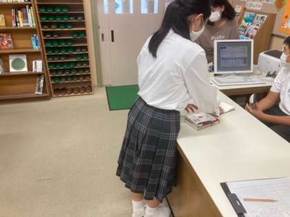各学年の図書係が、貸し出しの手続きをしてくれています。