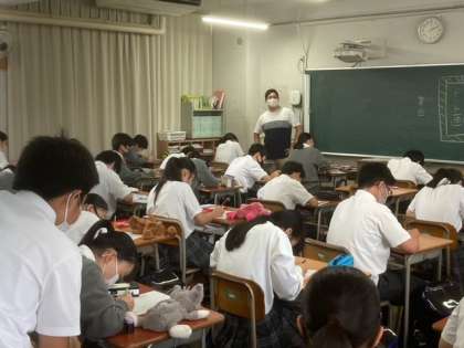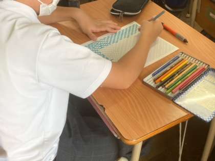 1年生が文化活動発表会に出展するモザイクアートを作成しています。