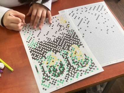 一人一人が受け持つパーツを色鉛筆で綺麗に塗っていました。