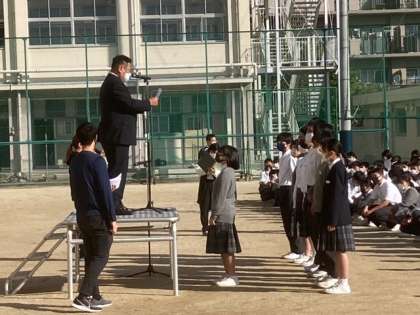 全校集会で、後期生徒会・学級役員のみなさんが認証されました。