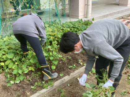 余計なツルを整えながら、一部サツマイモを収穫しました。立派なものが育っていました。
