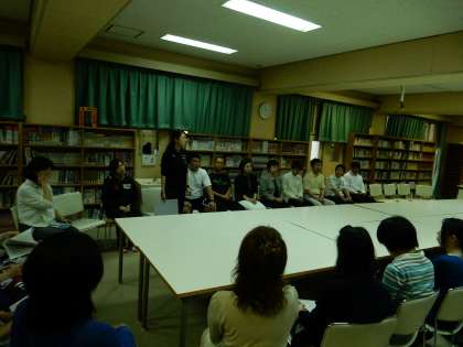 写真上は1年の説明会、下は2年の懇談会の様子です。