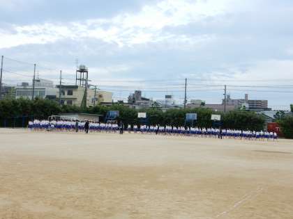 台風の影響で雨が心配されましたが、1,2時間目の2年の学年練習はなんとか運動場で行うことができました。