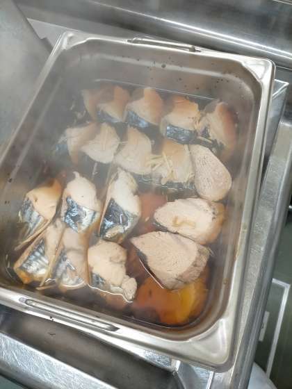 千切りのしょうが、しょうゆ、砂糖、みりん、料理酒などで味付けして煮込んでいます。