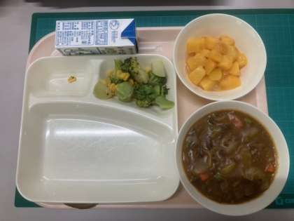 本日の給食は、みんなが大好きなメニューはカレーライスです。