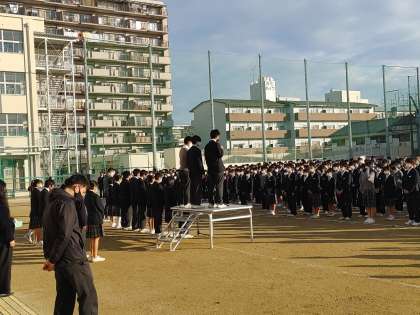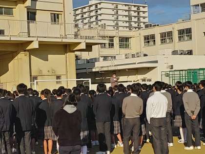 全校集会がありました。命を守る話や迷惑行為、生徒各委員会からの目標等の発表等がありました。今週金曜日は、終業式となります。