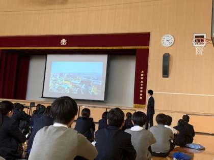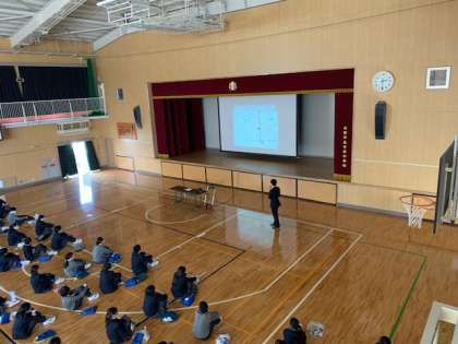 3月16日(水)の6限、2年生は新体育館で、特別支援教育の取り組みの導入として、大阪府立光陽支援学校より講師の先生に来校いただき、ご講演をいただきました。