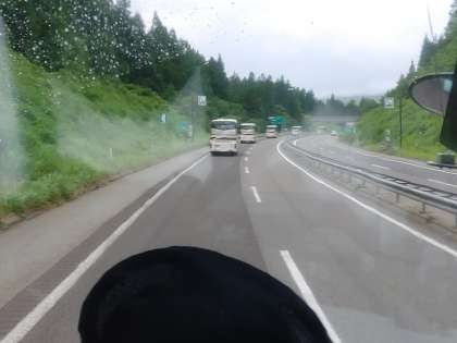 バスは、まもなくひるがの高原SAです。