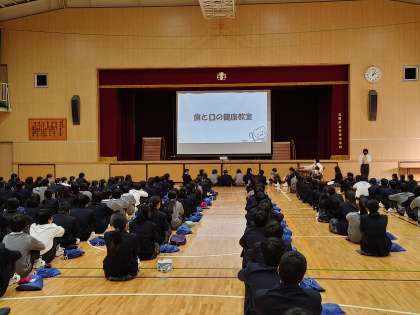 6限目、体育館では1年生が歯と口の健康教室を開催しました。