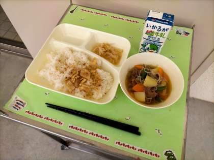 気温が上がる中、体育祭の学年練習を行った後です。しっかり味のついた肉じゃがを食べて、ビタミンやミネラルも補給し、午後からの授業もがんばれることでしょう。