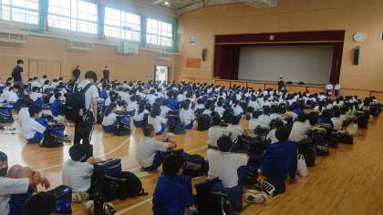 体育館で出発式をしていよいよ出発です。