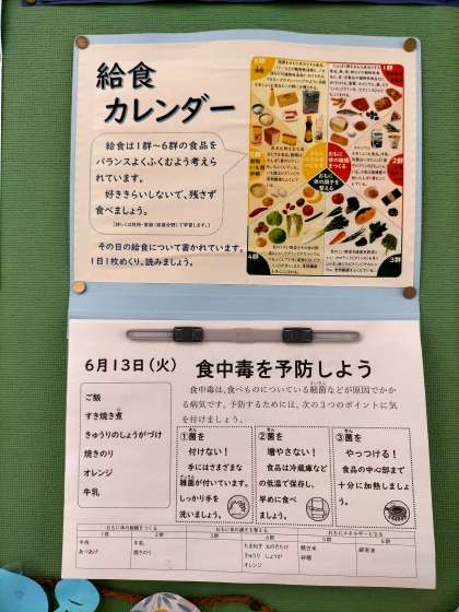 教室では、食育委員会の生徒が今日の給食カレンダーに載っている「食中毒を予防するポイント」についてクラスのみんなに紹介をしてくれました。