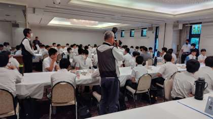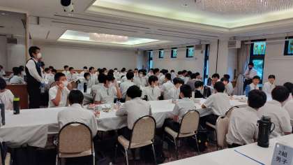 退館式を行い、ホテルの方にお礼を伝えました。ありがとうございました。このあと、班別にJAIKA、広島修道大学、オタフク、江波山気象館、安芸太田(ジップライン、農業体験、木工体験、苔玉作り)での体験活動となります。