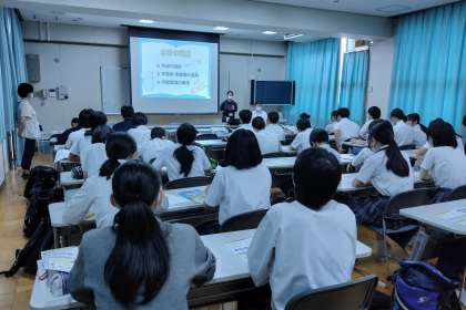 本日、7月19日(水)の放課後13時30分より、夏休みに向けた部活動代表生徒対象に株式会社明治の講師の方から熱中症予防についてお話をいただきました。