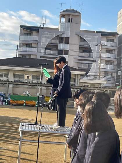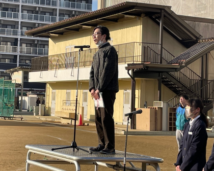 1月29日(月)の全校集会で、食育委員の代表が「学校給食週間」について紹介をしました。