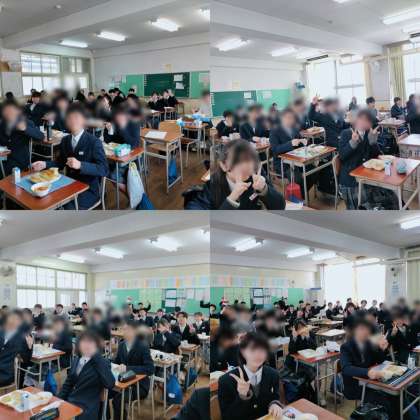 給食を食べる前には、毎日食育委員さんが給食カレンダーを音読してくれました。今日の献立は何か、どんな食べ物を使っているのか、それぞれどれくらいの量を食べれば栄養バランスがよくなるのかを毎日の給食で学んだことでしょう。返却の時には、たくさんの人が「ごちそうさまでした!」「3年間ありがとうございました!」と温かいあいさつをしてくれました。
