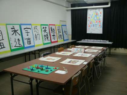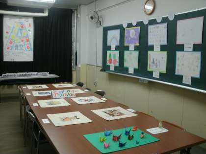 青空学級では、習字、テーブルクロス、手形モニュメント、絵などの作品作りに取り組みました。