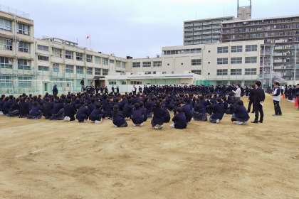 4月8日(月)、新転任の教職員の着任式を行い、その後に始業式・対面式を実施しました。
