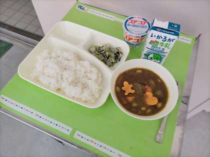 今日の献立は、「牛肉と大豆のカレーライス、キャベツのひじきドレッシング、ヨーグルト、牛乳」でした。