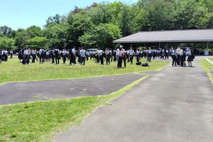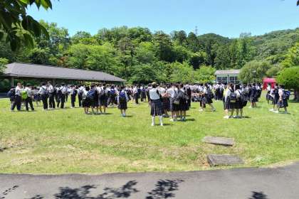 昼食受取場所に集まっています。これから昼食となります。