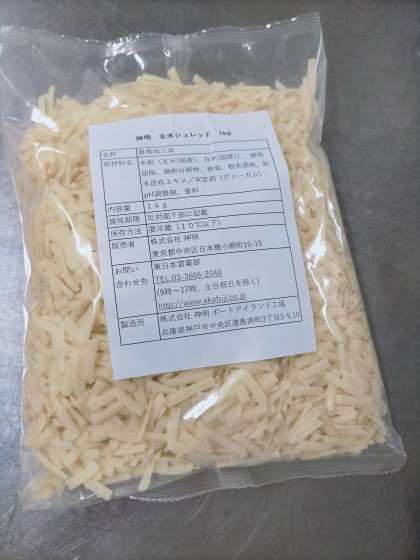 今年度から、乳アレルギーのある人も食べることができるようにと「乳なしチーズ」を使用しています。(中央の写真が「乳なしチーズ」です。)乳なしチーズは米粉、植物油脂などから作られているそうです。