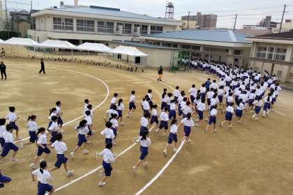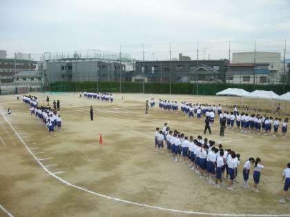 入退場の練習やクラスごとで学園競技の大繩の練習をしていました。担任の先生も指示が飛んでいました。
