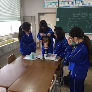 美容体験では香ケ丘リベルテ高等学校の先生に講師にきていただきました。