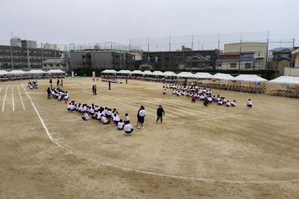 2年生団体競技 大縄跳びクラス対応で跳べた最高回数を競います。