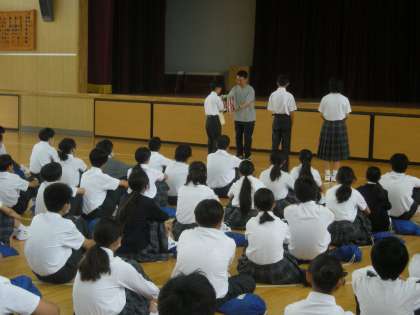 1年学年集会での表彰<6月12日(木)>