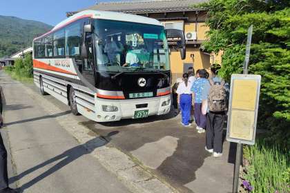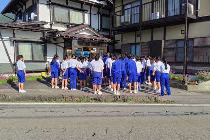退館式を終え、集合場所の牧歌の里へ向かいます。