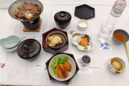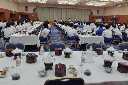 高山散策を終え、本日の宿泊先のひだホテルプラザに到着し、入館式を行いました。その後に夕食を摂りました。