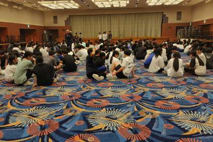 夜のレクリエーションもあと僅かとなりました。イントロクイズなどに取り組んでいます。レク係が中心となり、みんなで楽しんでいます。
