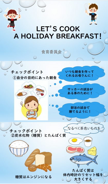 7月17日(木)、食育委員会から正しい朝食のとり方等について、発表がありました。